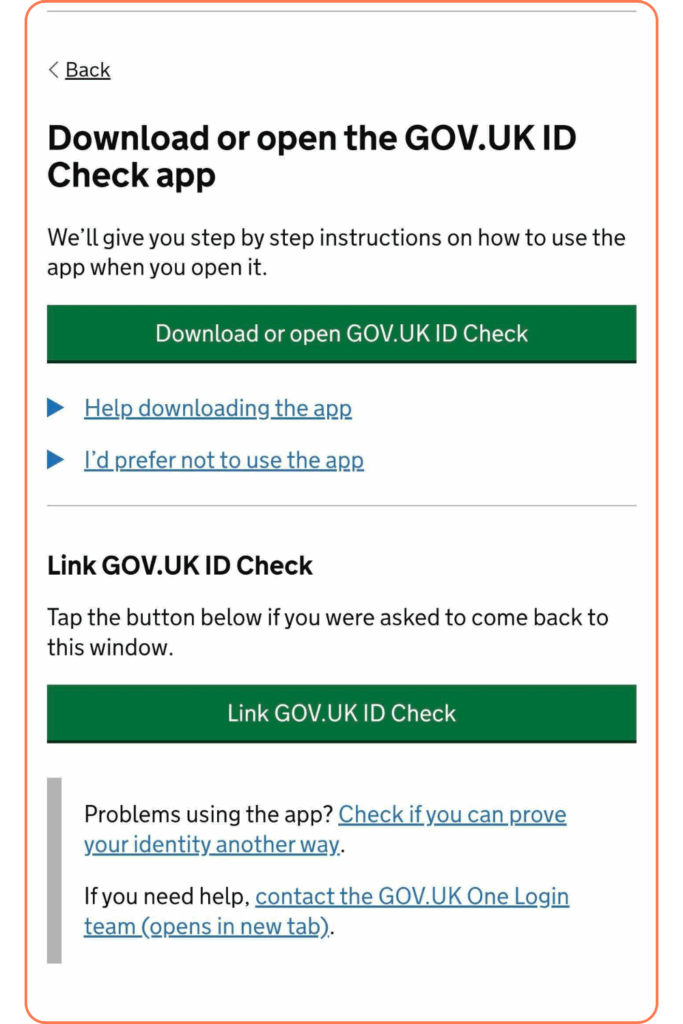 Once downloaded, return to the above page and click Link GOV.UK ID Check. Then follow the instructions to complete the ID check.